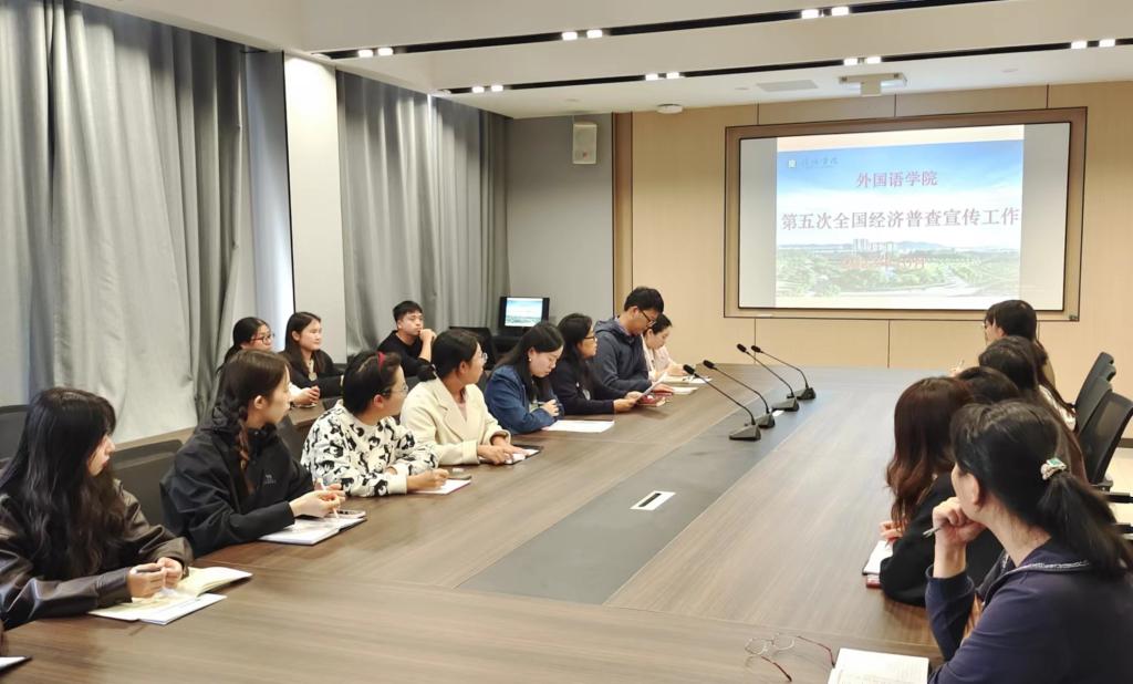 根据《全国经济普查条例》的规定,国务院决定于2023年开展第五次全国经济普查工作。我校为了积极响应国家号召,按照“全国统一领导、部门分工协作、地方分级负责、各方共同参与”的原则,10月9日下午,外国语学院在外语楼110会议室召开第五次全国经济普查宣传工作会议。外国语学院班子成员和部分师生参加了会议。