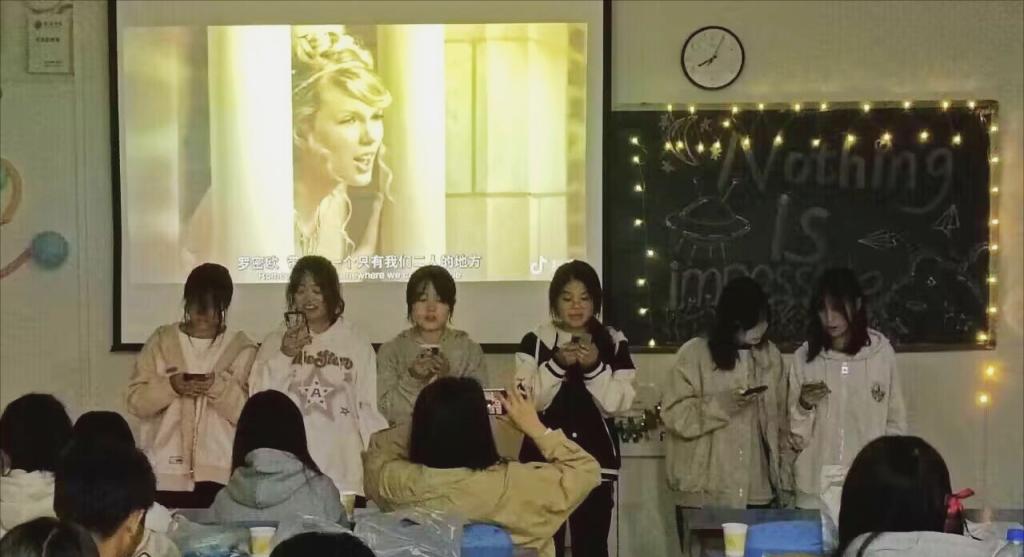 为提升同学们学习英语的兴趣,增强同学们的自信,更好地展示我院学生的风采,外国语学院于11月7日—9日在2023级各班相继开展2023-2024学年第一期“第二课堂”活动。本次“第二课堂”以“Being an Undefined Self”为主题。活动要求主持人全英脱稿,节目全英式表演,节目内容丰富多彩,如唱歌、跳舞、诗朗诵、相声、配音等。活动中,同学们积极展示,现场欢声雷动,以下为精彩瞬间展示: