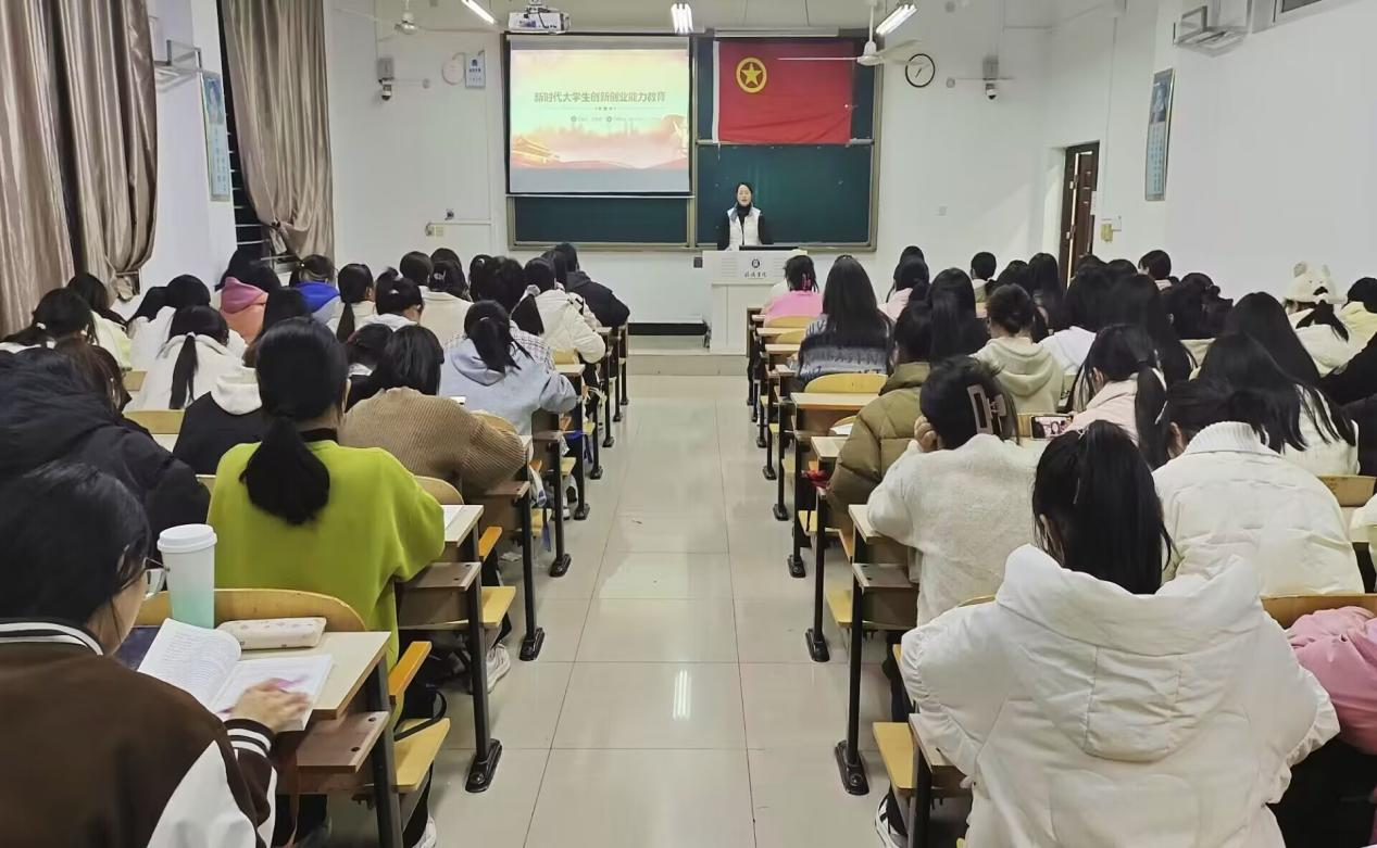 在本次宣讲会上,沈蔷薇老师分别从大学生创新创业能力培育的意义、大学生应具备的创新创业品质、当下大学生创新创业能力培养中存在的问题和解决当下大学生创新创业能力培养问题的对策四个方面进行讲述。沈蔷薇老师首先分享了部分受欢迎专业就业率低的现象,从而表明未来职业选择竞争力大,至此引入大学生创新创业能力培养的意义。之后,沈蔷薇老师向同学们介绍了任正非、王兴等几位创业的成功人士,通过了解他们的故事,让在座同学对大学生创新创业应具备的品质与能力有了一定了解。最后,沈老师针对大学生创新创业能力培养中存在的问题提出对策,并激励同学们向优秀的创业者、实践者学习,学习他们脚踏实地、勇闯新路、坚持不懈、敢于创新的精神,让创业梦想成为现实。
