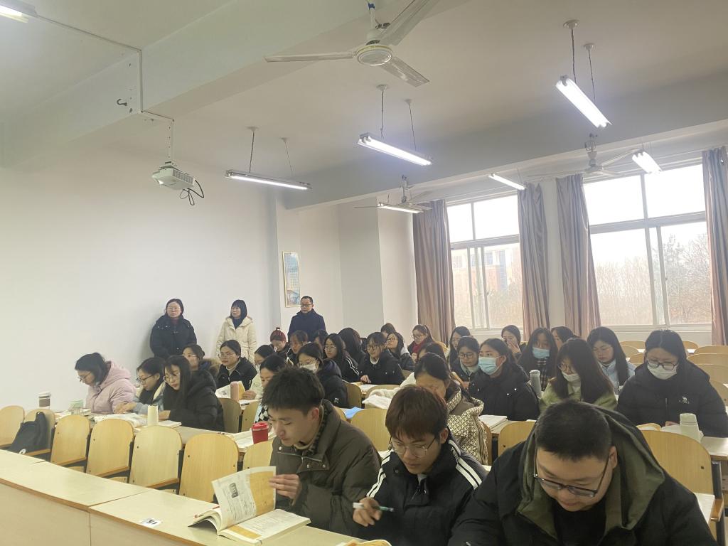 王强查看了外国语学院教师到岗、学生到课、教学保障等情况,与同学们同听“开学第一课”,对学院教师的教学态度、学生的学习热情和班级的课堂氛围给予了充分肯定。