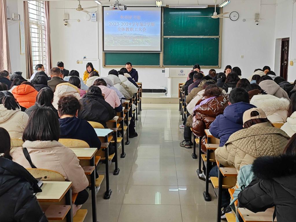 为了统一思想、凝聚共识,顺利开启新学期各项工作,3月1日下午,外国语学院在外语楼202教室召开2023-2024学年第二学期全体教师大会。外国语学院院长罗德喜、党总支副书记程娇炎、教学副院长李静、班子成员和全体教师参加了本次会议。会议由程娇炎主持。