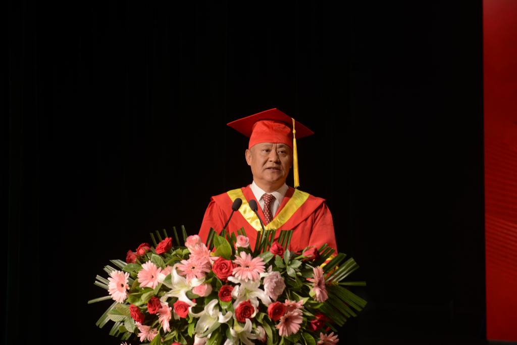 教师代表董文静在发言中回顾了与同学们课上和课下相处的点点滴滴,表达了对学生的不舍和惜别之情。同时以校友的身份讲述了与学校共同成长的感人经历,希望同学们能够做到知行合一,秉承着“内外兼修、学贯中西”的院训去书写人生新的辉煌篇章。