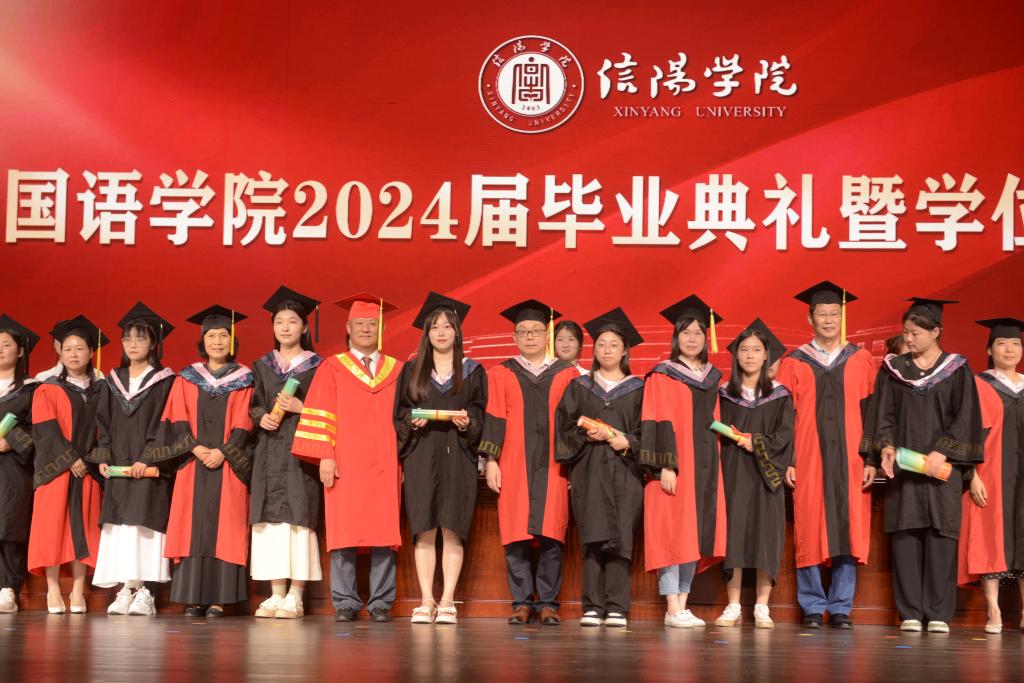 6月3日下午,外国语学院2024届毕业典礼暨学位授予仪式在音乐厅隆重举行。信阳学院副校长王强、外国语学院院长罗德喜、党总支副书记程娇炎、教学副院长李静、特聘教授张晓云、张驰教授、青年副教授代表、师生代表以及全体2024届毕业生共同参加了此次典礼。典礼由程娇炎主持。