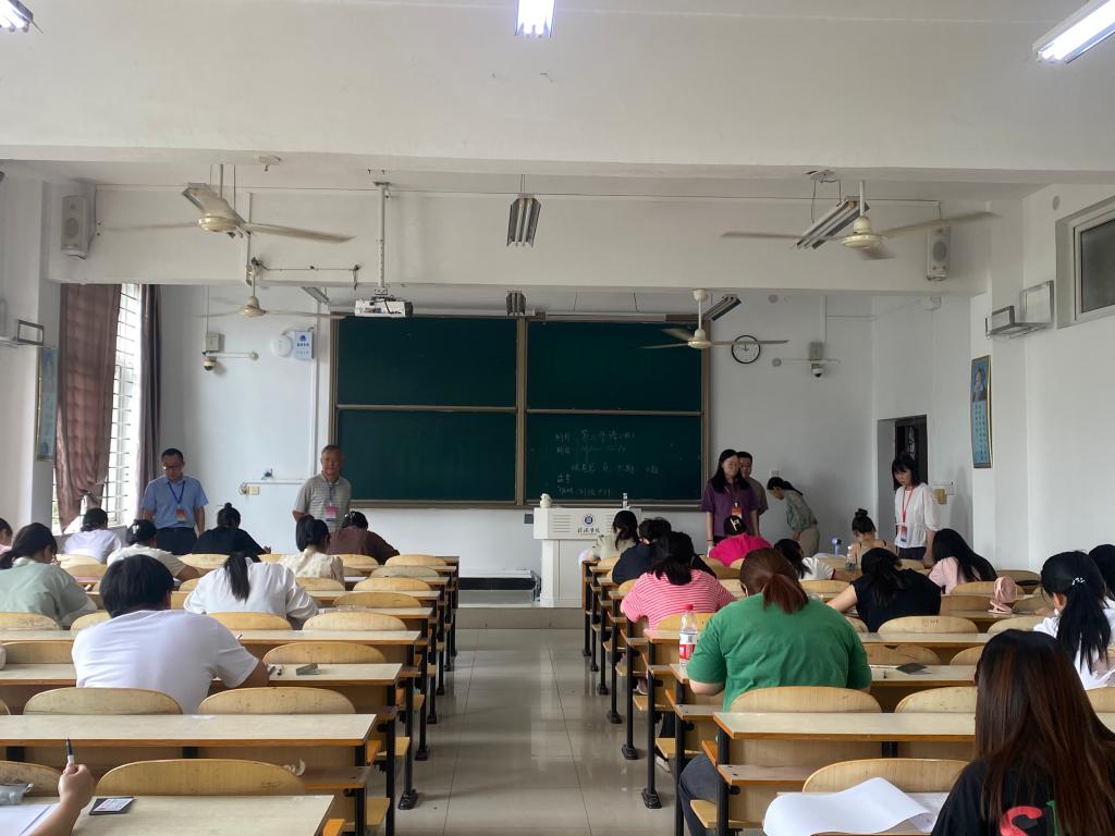 为了保障期末考试的顺利进行,严肃考风考纪,促进良好学风建设,6月26日上午副校长王强在教务处秘书李伟的陪同下,深入外国语学院各考场开展期末考试巡考工作。外国语学院院长罗德喜、党总支副书记程娇炎、教学副院长李静和班子成员陪同参与了此次巡考。