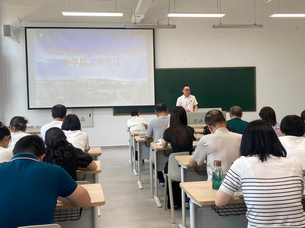 8月31日下午,外国语学院在南湖校区413教室召开2024--2025学年新学期工作会议。外国语学院院长罗德喜、班子成员和全体教师参加了会议。