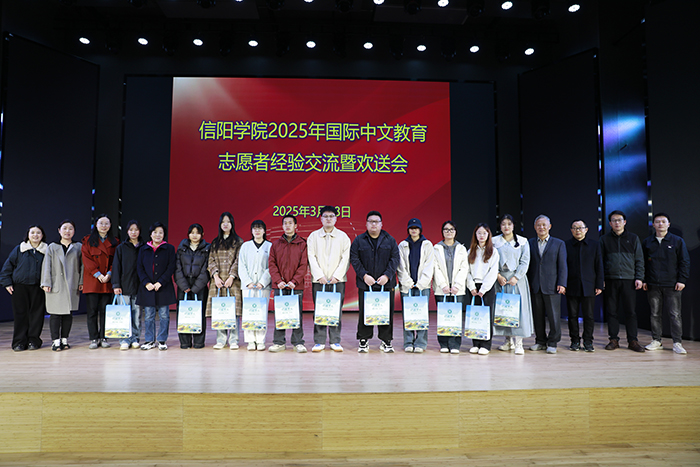 3月28日,信阳学院2025年国际中文教育志愿者经验交流暨欢送会在南湖校区教一楼113报告厅圆满举行。副校长王强出席欢送会,国际合作与交流处负责人,文学院与外国语学院院长、党总支书记、学工秘书、毕业班辅导员、任课教师等近200名师生参加了活动。国际合作与交流处负责人芦金凤主持会议。