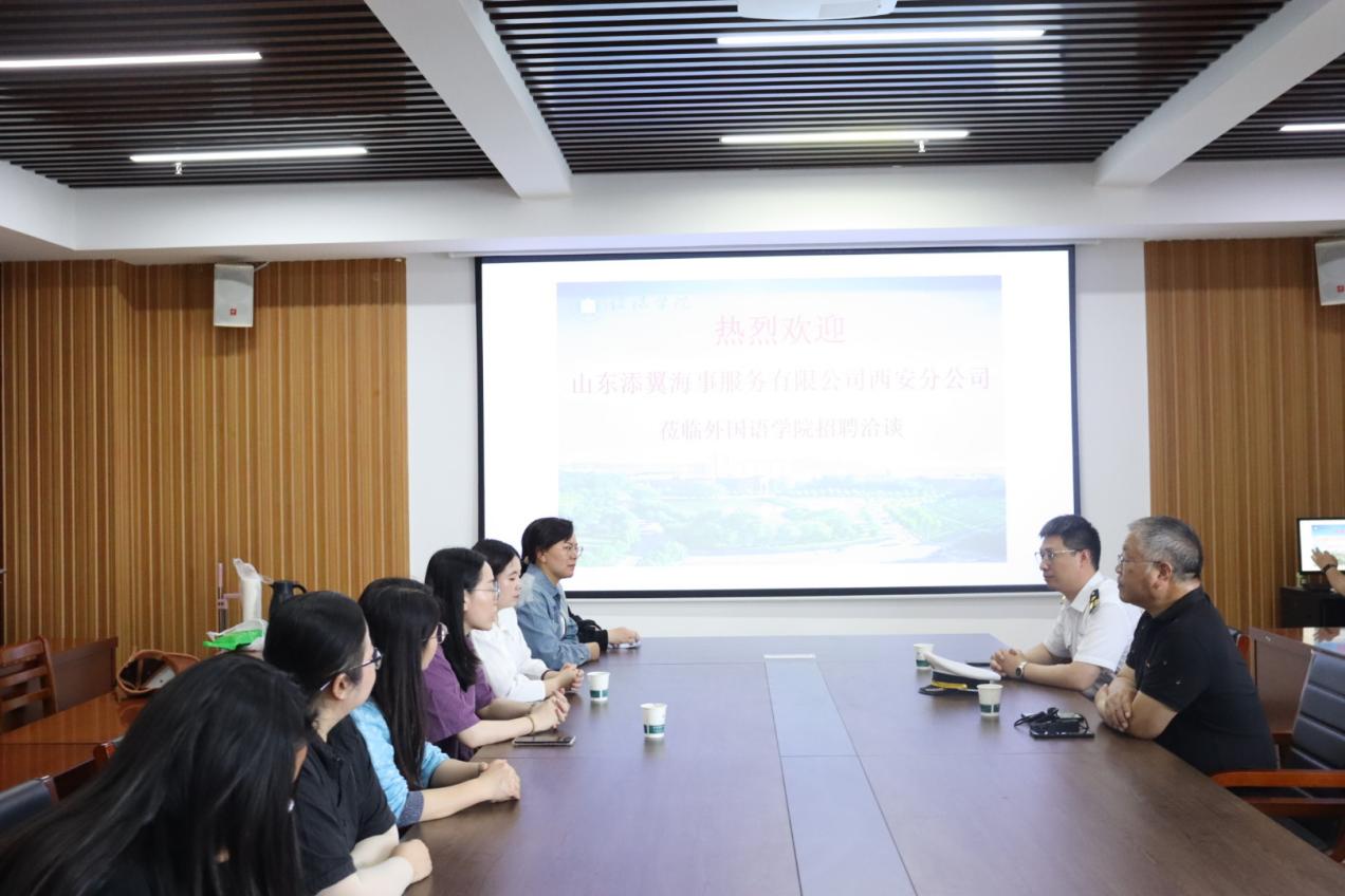 为贯彻落实教育部“访企拓岗促就业”专项行动要求,深化产教融合、校企合作,4 月 27日下午,外国语学院开展添翼海事服务有限公司专场招聘座谈会。外国语学院党总支副书记程娇炎、学工干事何珊珊及2025届毕业生辅导员参会,与企业代表共同探讨航海人才培养新模式,搭建高质量就业对接平台。