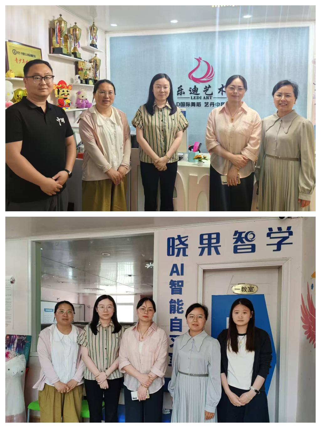 5 月 18日,为进一步深化产教融合,拓宽学生就业渠道,外国语学院党总支副书记程娇炎率学工团队一行前往乐迪艺术和晓果智学AI 智能自习室进行实地走访调研,开启校企合作新篇章。