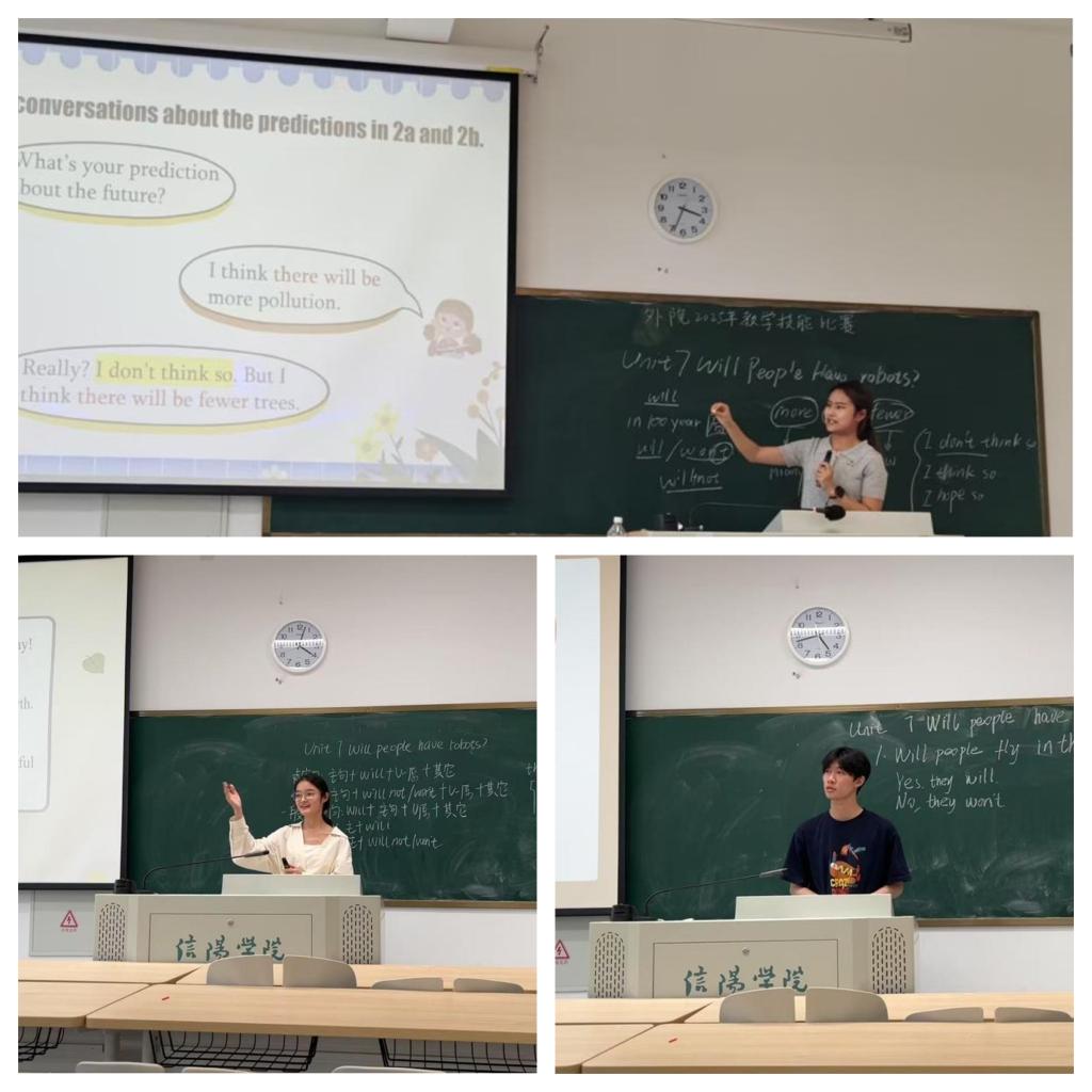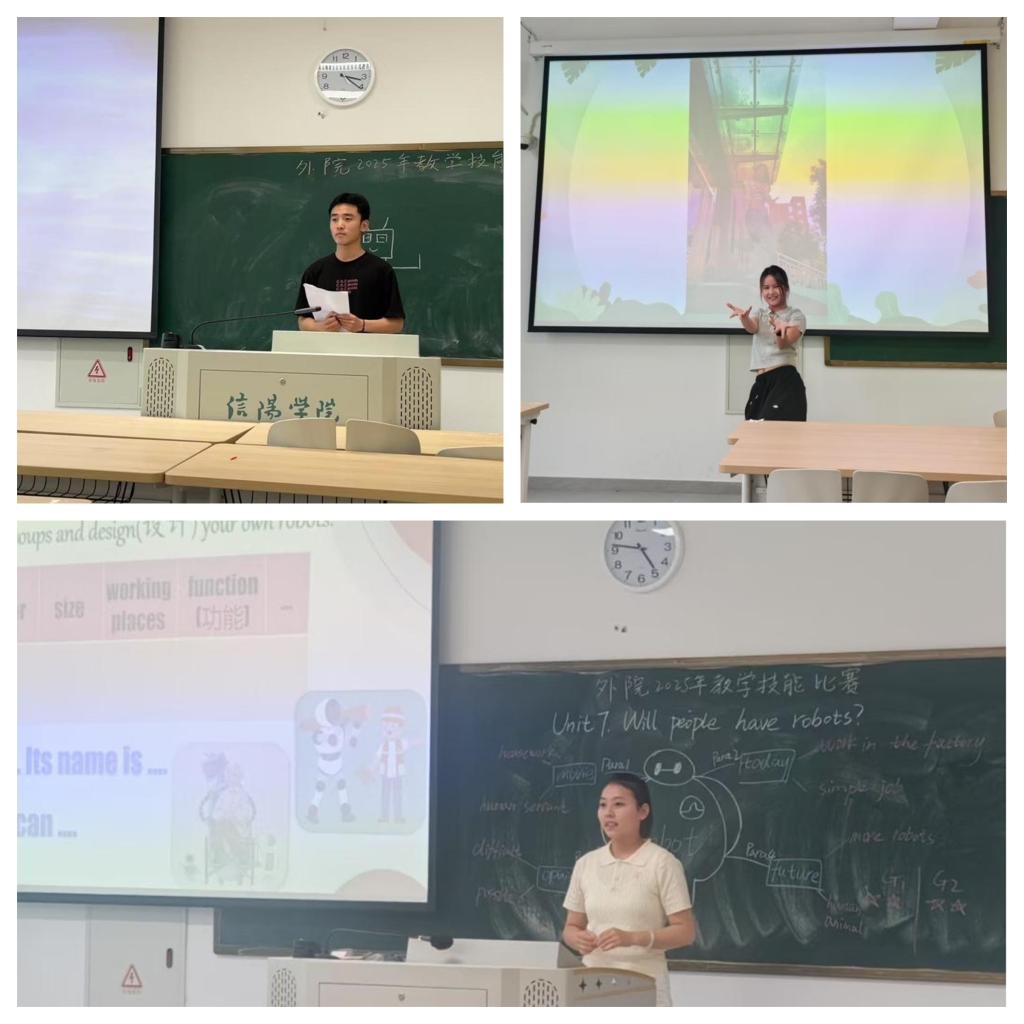 为进一步提升英语师范专业学生教学实践能力,选拔优秀选手参加校级师范生教学技能大赛,5 月19日,外国语学院2025年师范生教学技能比赛在外语楼 310、311 和 312 教室火热开赛。本次比赛面向2026届英语师范专业学生,24位选手同台竞技,一展未来教师的专业风采。