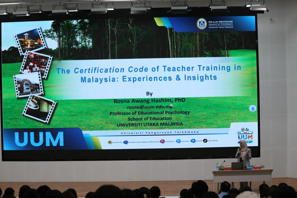 在第一场讲座中,Rosna教授紧密契合我校英语专业师范认证工作需求,系统分享马来西亚职前教师培训模式的核心架构、师范专业认证标准与流程,深入解析马来西亚在保障教师培养质量、衔接教育理论与教学实践方面的成熟经验,为我校优化师范人才培养方案、完善认证准备工作提供国际视角的指导与借鉴。