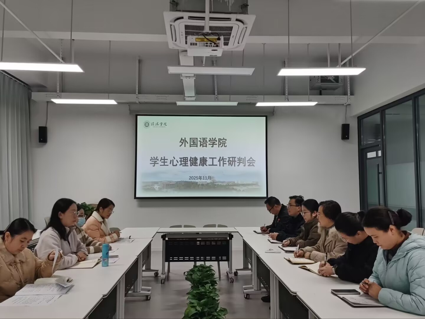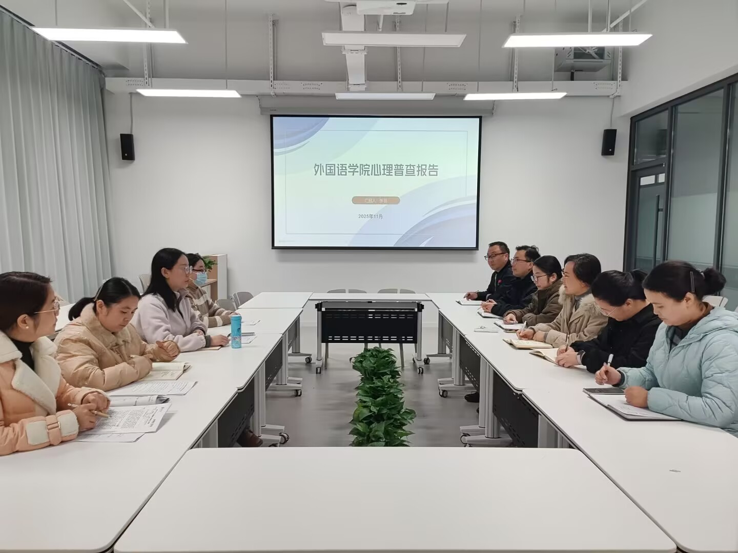 为精准掌握学生心理健康动态,科学化解心理风险,持续优化心理健康教育工作体系,11月18日,外国语学院在教二楼316会议室召开学生心理健康情况研判会。学院党总支书记程娇炎、学工干事何珊珊、心理健康中心教师张羽及全体辅导员参会,共同为学生心理健康保驾护航。