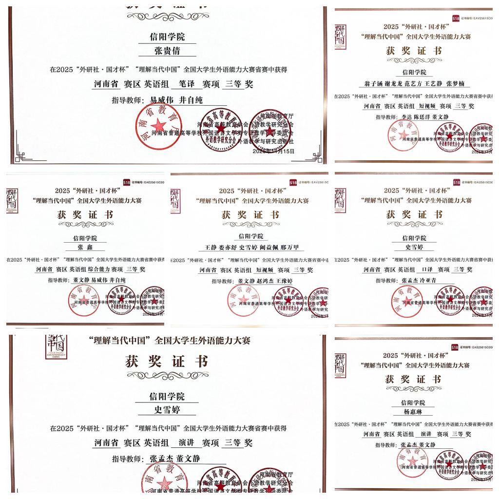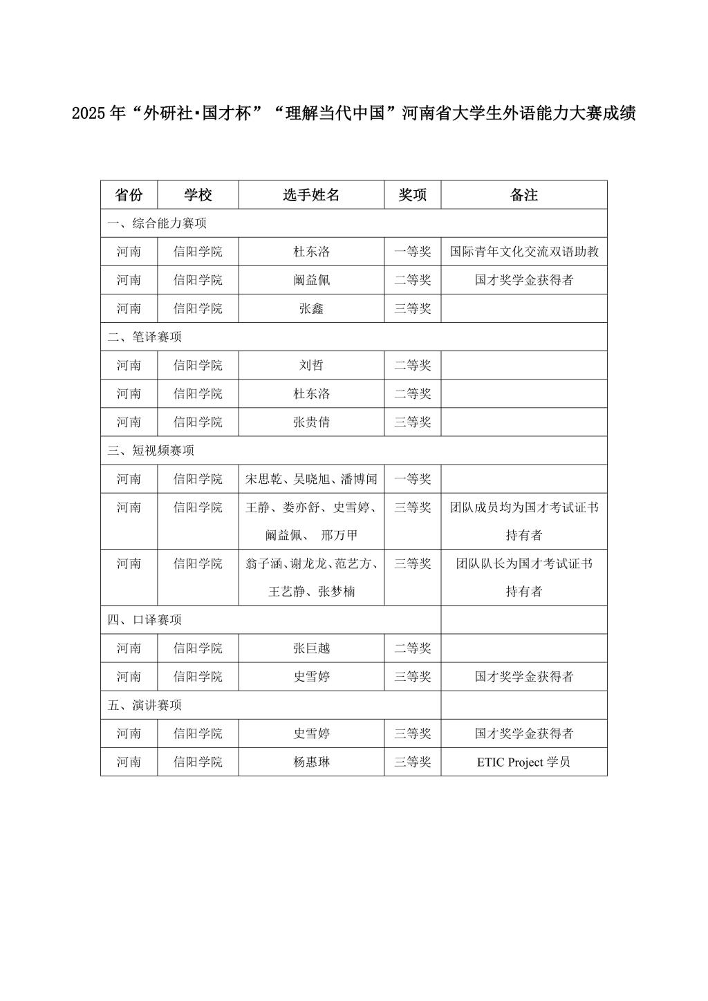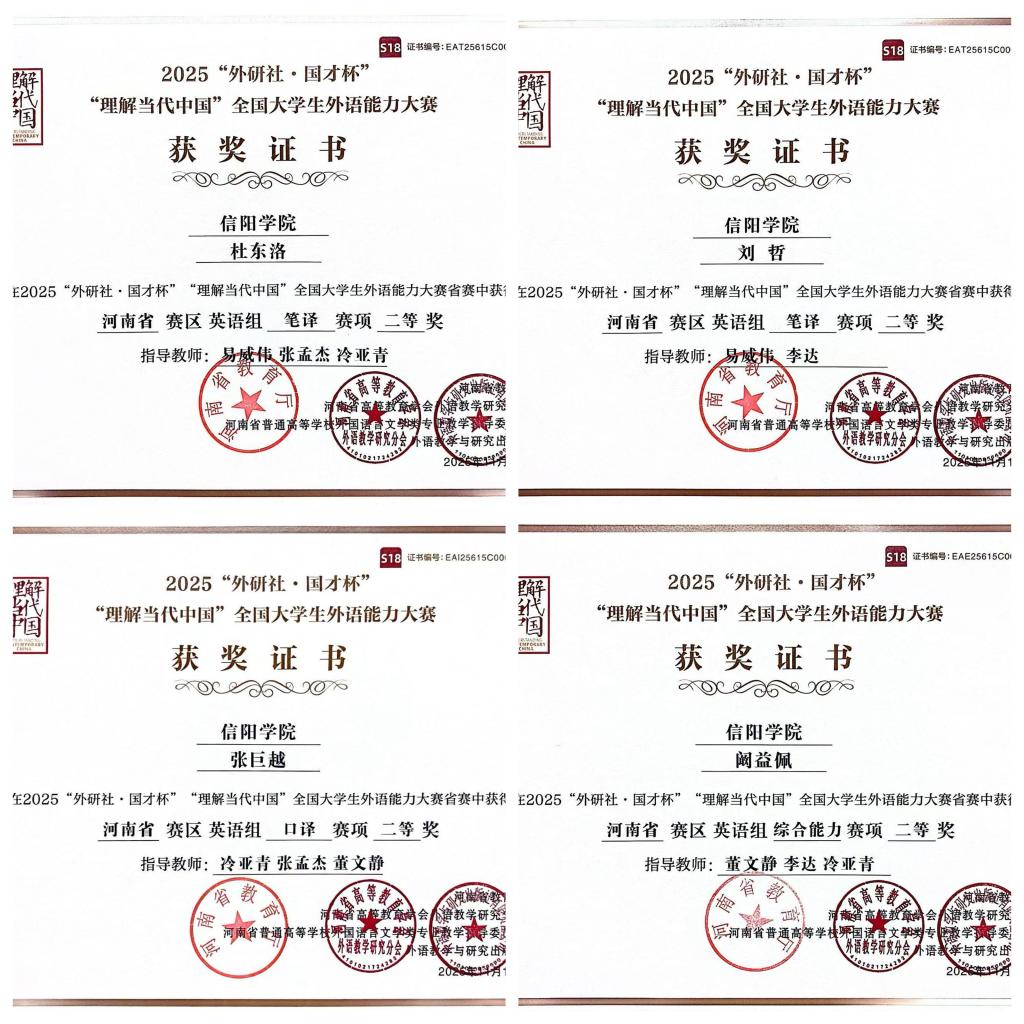 近日,河南省教育厅办公室《关于2025年全国大学生外语能力大赛河南赛区比赛结果的公示》正式发布,我校外国语学院学子与来自全省高校的优秀选手同台竞技,捷报频传,最终斩获一等奖 2 项、二等奖 4 项、三等奖 7 项。
