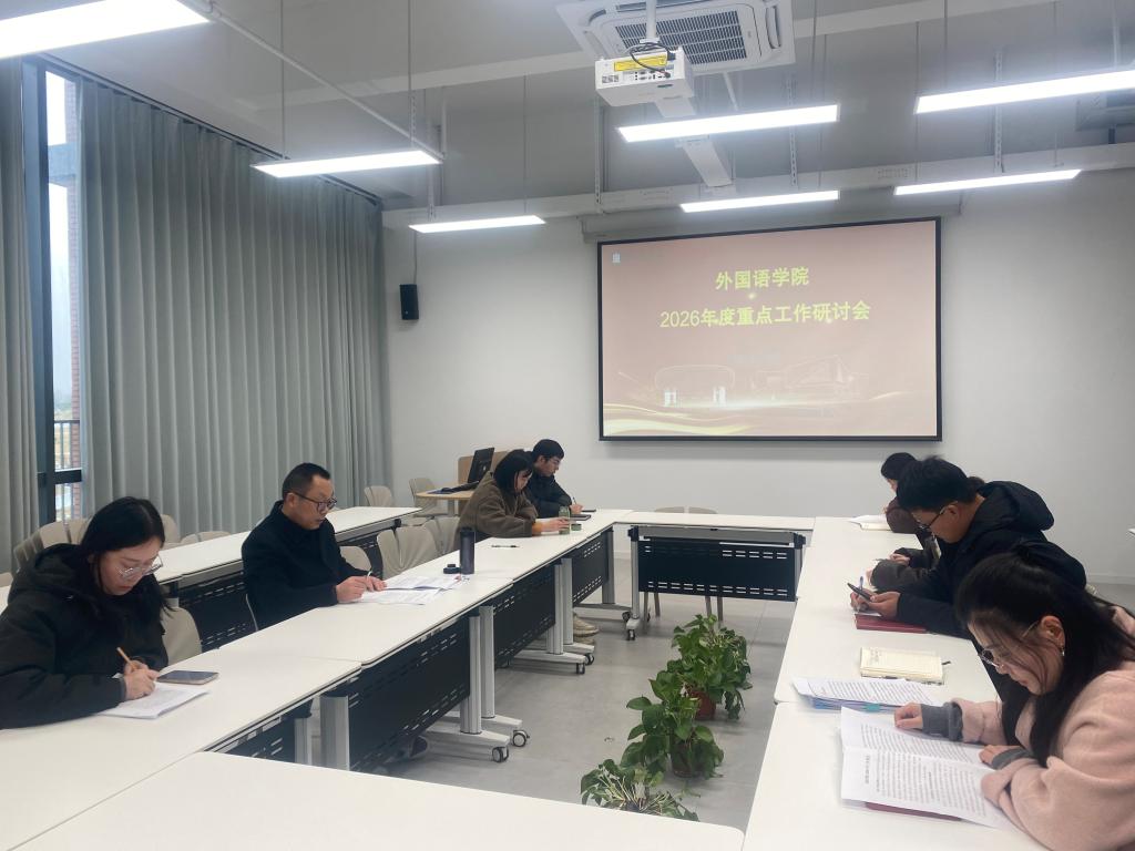 为进一步凝聚发展共识、明确年度目标,3月17日下午,外国语学院召开2026年度重点工作研讨会。外国语学院院长罗德喜、党总支书记程娇炎、教学副院长李静、班子成员、教务员及王晓梦老师等参会。