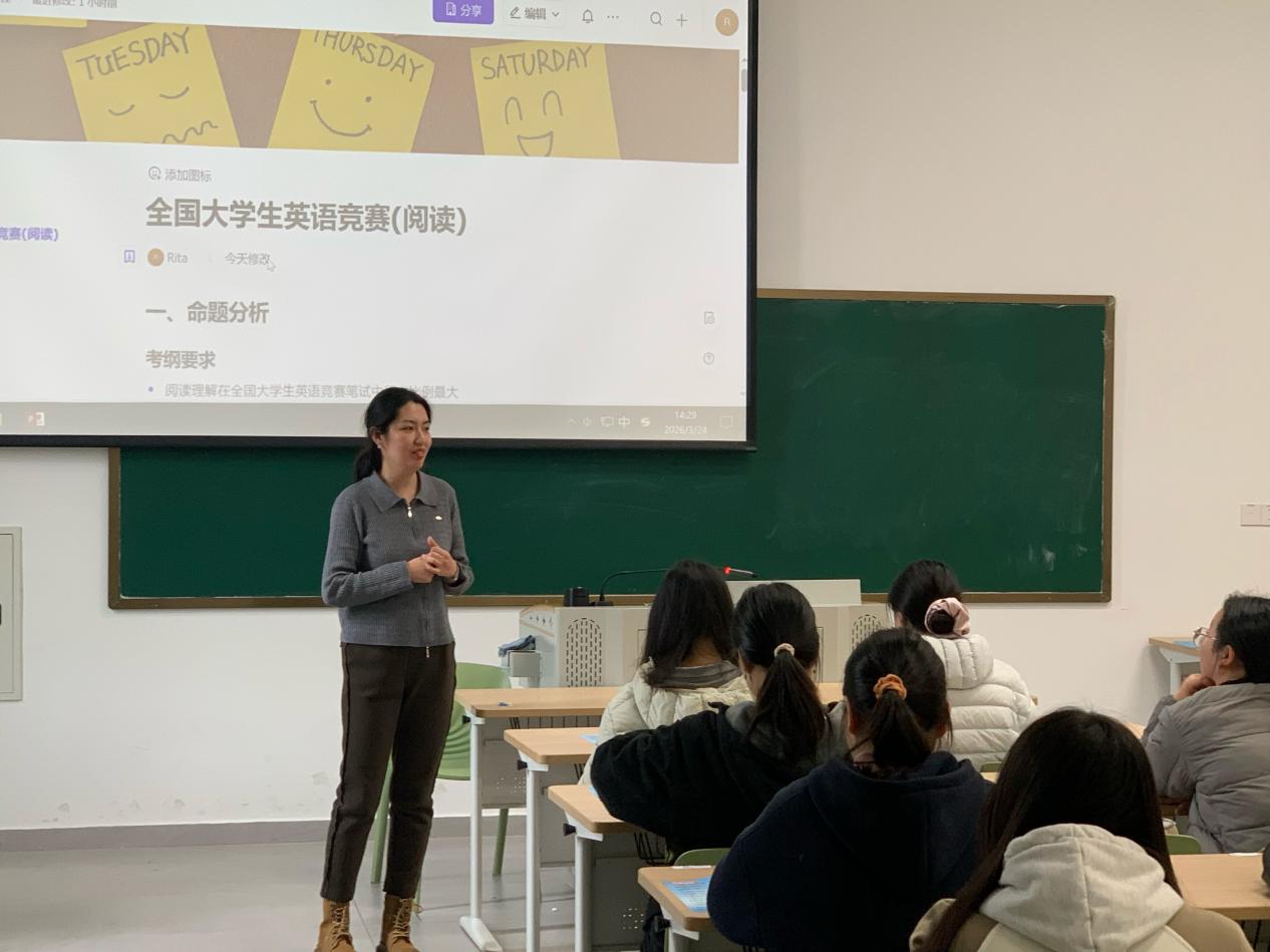 据悉,全国大学生英语竞赛初赛将于2026年4月12日举行,信阳学院高度重视此次竞赛备赛工作,此次阅读专项指导是学校竞赛备赛系列活动的重要组成部分。学校将持续聚焦参赛学生需求,开展更多针对性强、实用性高的备赛指导活动,为学生搭建提升英语能力、展现自我风采的平台,助力学生在全国大学生英语竞赛中斩获佳绩,推动学校英语教学质量与学生综合能力的进一步提升。