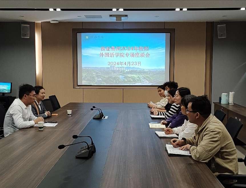 为进一步深化校企合作,拓展学生就业渠道,4月23日下午,信阳西亚和美有限公司来我院参加访企拓岗座谈会,学院党总支副书记程娇炎、学工干事何珊珊、就业工作负责人赵晓伟、毕业班辅导员饶静、吴章丽、夏茹茹接待了西亚和美有限公司招聘负责人闵龙飞一行。