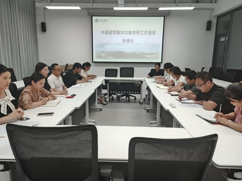 6月16日下午,外国语学院在教二楼316会议室召开2026届毕业生考研工作部署协调会,院长罗德喜、党总支副书记程娇炎、行政干事梁书荣、学工干事何珊珊以及教务员易威伟和全体辅导员参加会议。会议由罗德喜主持。