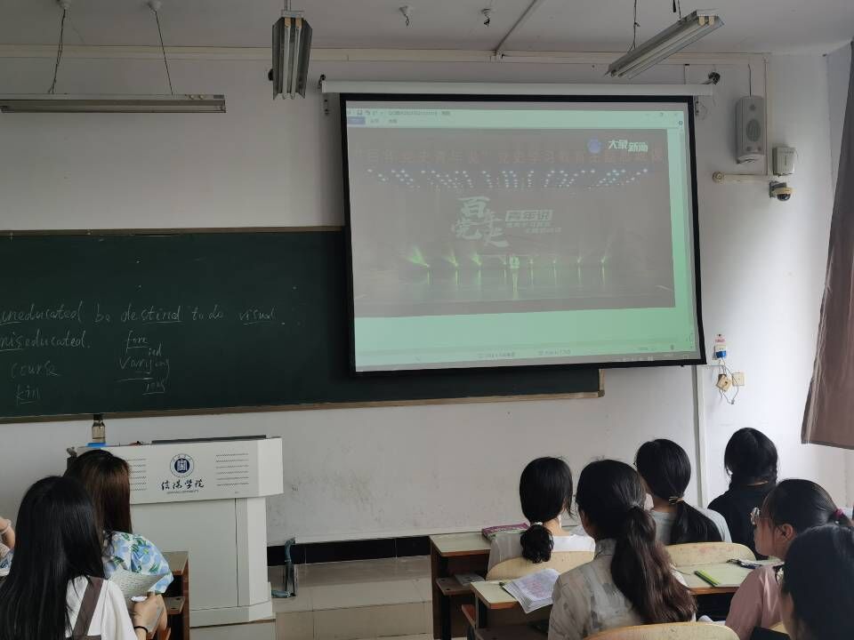 学史明理,学史增信,学史崇德,学史力行,5月21日晚上,外国语学院在外语楼组织2020级同学收看教育厅“百年党史青年说”现场展演暨颁奖仪式。